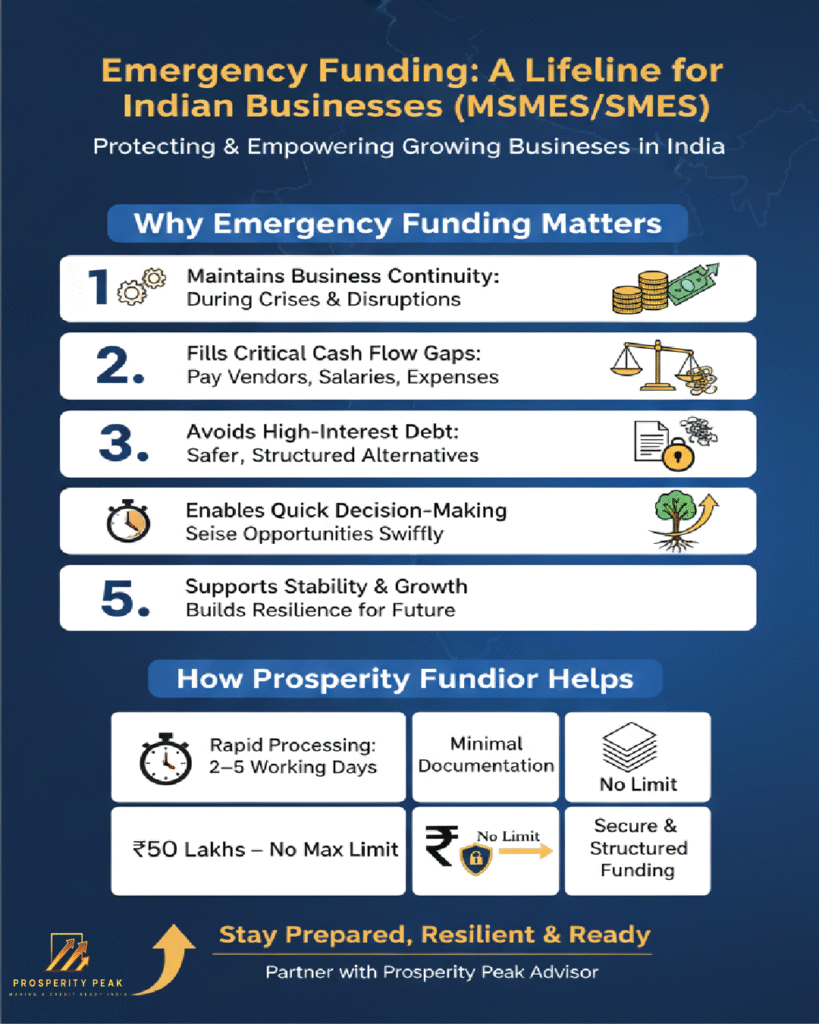 At Prosperity Peak Advisor, we understand the urgency and pressure MSMEs face during financial emergencies.